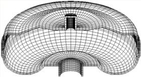 轎車配備用液力變矩器制造精度要求很高, 因此如何控制焊接變形, 保證產品的尺寸精度, 是焊接工藝是否成功的一個關鍵。采用了熱彈塑性有限元和殘余塑變兩種方法,對液力變矩器的焊接變形進行了數值模擬和分析。圖5為液力變矩器的焊接變形。計算分析表明,液力變矩器上下蓋板總成焊接后的變形將影響上蓋內表面與內壓環的間隙以及連接塊頂面的平行度和垂直度, 因此在裝配夾具的設計以及焊前裝配中必須考慮這一因素, 以保證焊后產品尺寸形狀的技術要求。焊接變形隨著焊接線能量的增加而增加, 雙道焊接時的軸向收縮也將顯著增加. 因此應選擇大功率高速度的電子束單道焊接,.既能保證焊透, 又降低了焊接線能量, 從而大大減小焊接變形。