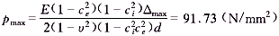 根據式(2),電機轉子內孔配合面上具有最大的切向拉應力σθemax和最大的徑向壓應力σremax,其值為: