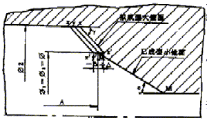 - 如果A'=A-D,將形成XX'H廓線,也保證了大小錐相交是凸棱線,只是較A'=A相比交點由Y'移至X',即在小錐鉸刀大徑刃口延長線上。由此可見只要延長了兩錐相交小錐鉸刀大徑就允許后加工(大錐)的軸向進給有一個小于名義分段軸向尺寸的誤差值(-D)。