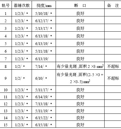 TBPT1632 —91《鋼軌焊接接頭技術條件》的技術要求, 氣壓焊60 kgPmU71Mn 鋼軌15 根試件落錘試驗情況如表2。