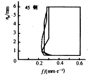 - 斷屑試驗方法符合專業(yè)規(guī)范要求。工件材料直徑大于70mm,采用的切削速度為:未涂層刀片切削45鋼,v=130m/min,PVD涂層刀具切削45鋼,v=180m/min,其他條件同上。試驗得到的斷屑范圍曲線如圖3所示。