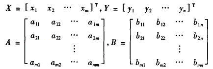 A和B是工藝過程中的技術矩陣,矩陣A描述在工藝輸出中物質形態沒有變化的系數矩陣,矩陣B表示工藝輸出中產生了新物質的系數矩陣.A是一個方陣,在工藝過程輸入量數目和形式不變的情況下,(I-A)是非奇異的,則輸入量X可根據輸出l,表示為:
