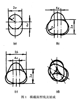 二、單螺桿泵幾種型線的分析及工藝探討: