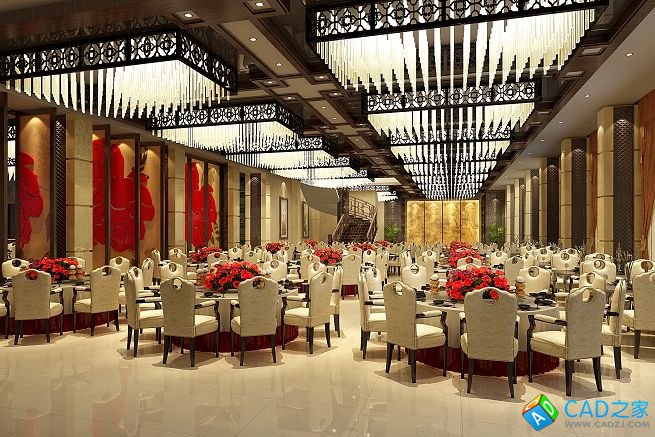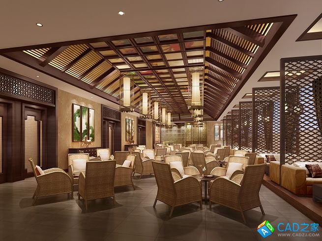 成都新中式海鮮酒樓全套CAD施工圖+效果圖